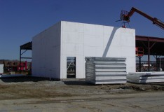 SYSTECO’s wall panel system works great for commercial warehouses. The panels are faster to erect than concrete walls. The steel + foam wall panels would be less expensive and would provide more insulation value then currently used “metal” siding or “tilt-up concrete” wall panels. This increased insulation value would allow the warehouse to remain cooler during hot summer days and warmer during cold weather days for those working within the warehouse.